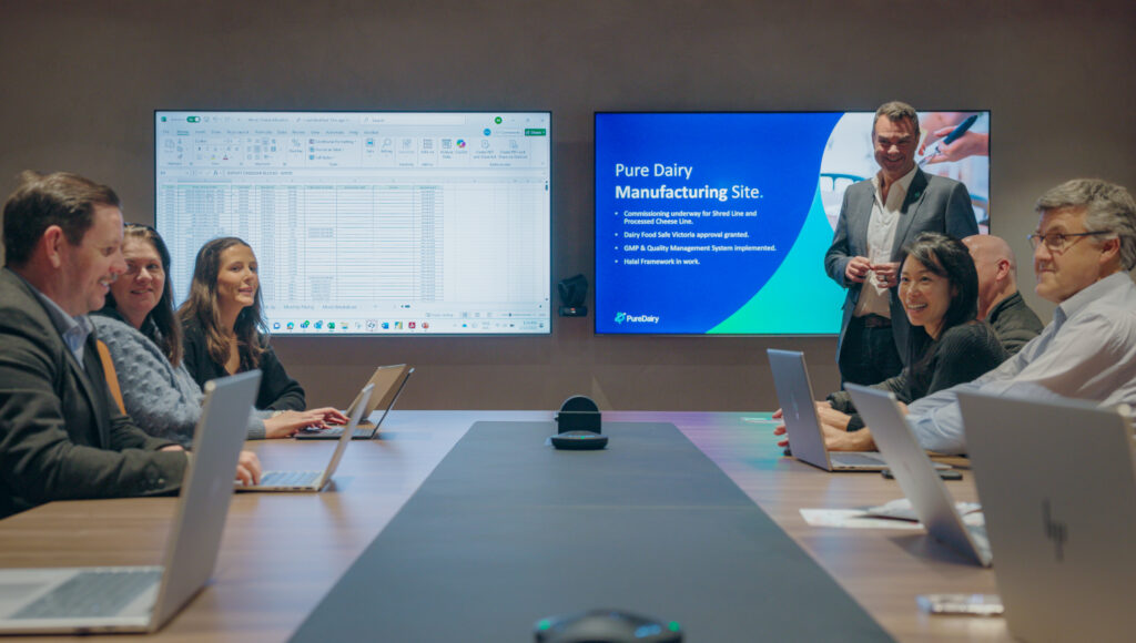 Today, Pure Dairy brings together multidisciplinary teams working across all areas of dairy. We operate five international offices and a trading network covering over 70 countries. Our 100-acre, state-of-the-art manufacturing facility in Australia’s dairy heartland provides unparalleled access to suppliers and seamless domestic and international logistics. Combined with our intellectual capital and deep industry connections, we are well-positioned to help shape the future of dairy.